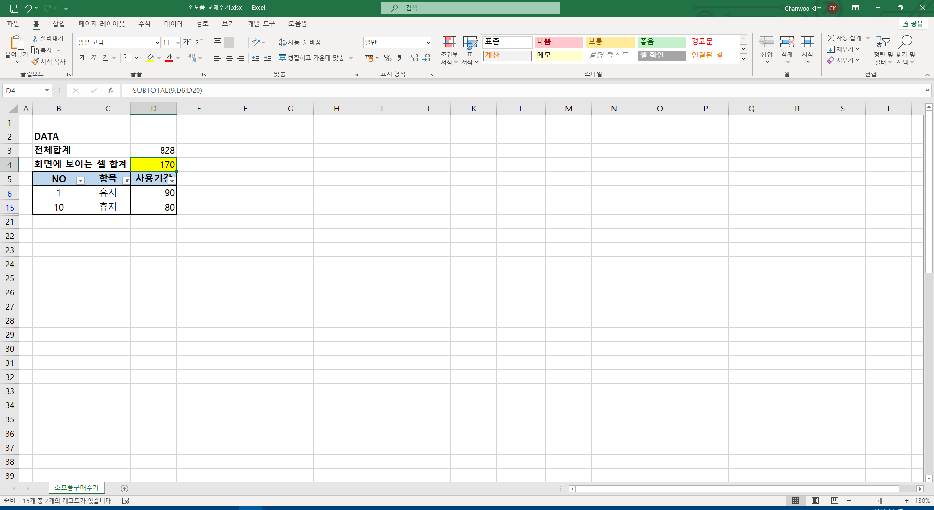 2. 출고 시트에 출고(판매) 내역을 일자별로 기록합니다.